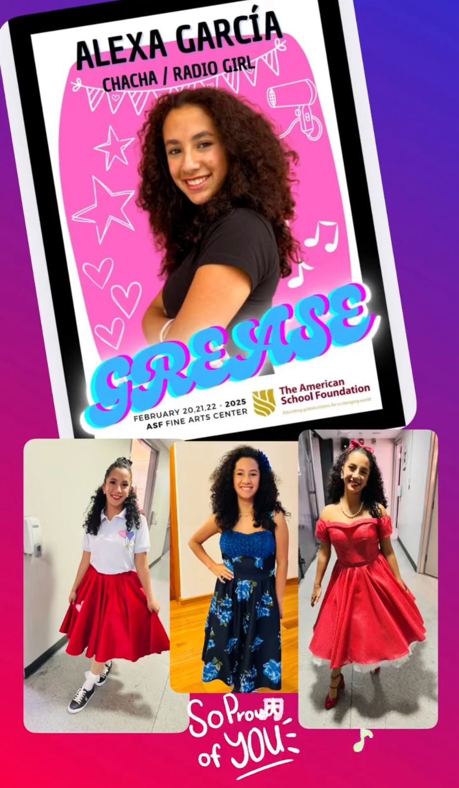 Alexa Sophia García Rojas, de 14 años, es estudiante de Middle School y actual Presidenta del Drama Club, destacándose por su pasión, liderazgo y amor por las artes escénicas.