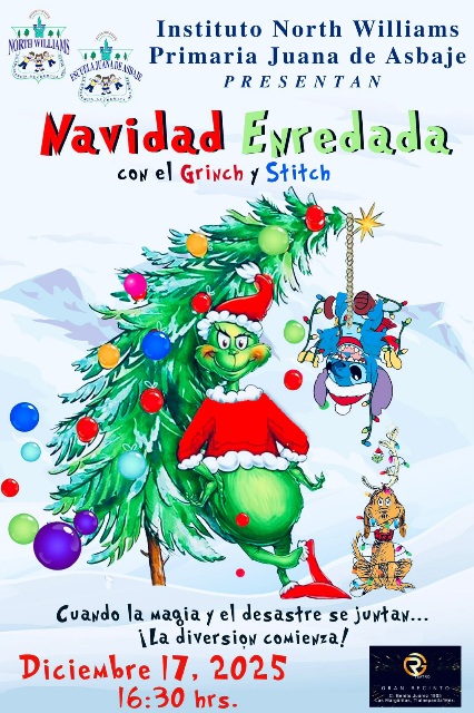 El Instituto North Williams y la escuela primaria Juana de Asbaje informaron que su tradicional musical “Navidad Enredada con el Grinch y Stitch,” será el 17 de diciembre en el teatro Gran Recinto, ubicado calle Benito Juárez 1905 Las Margaritas, Tlalnepantla.
