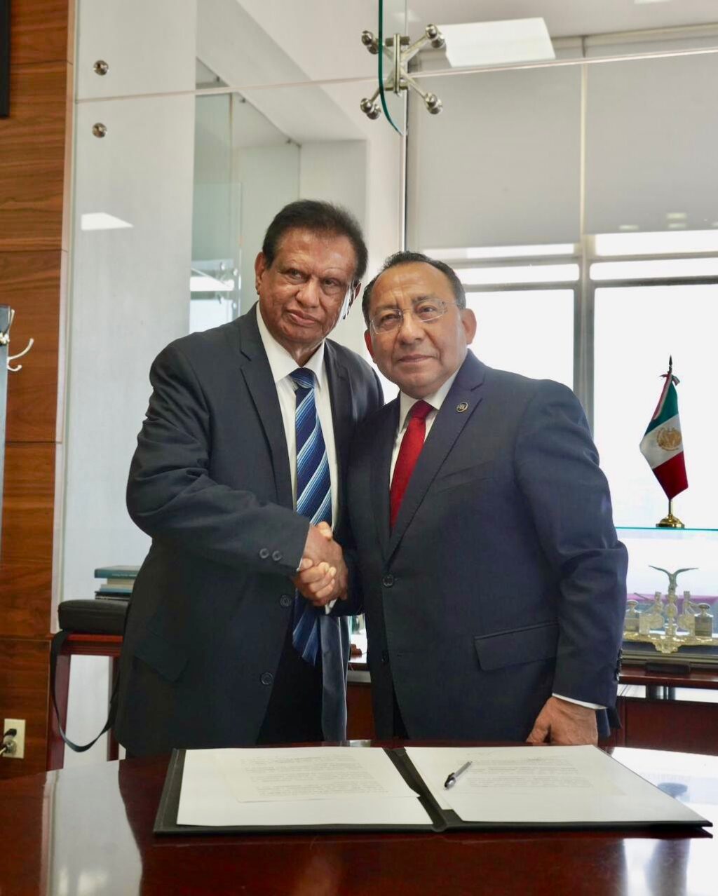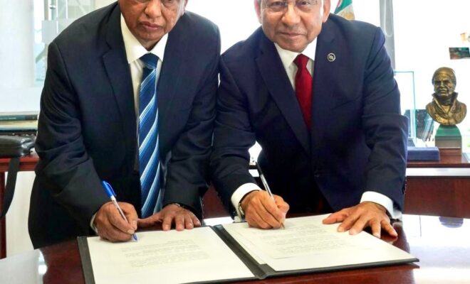 =El titular del PJ-CDMX, Rafael Guerra Alvarez y el líder del SUTPJ-CDMX, Diego Valdéz Medina firmaron el acuerdo.